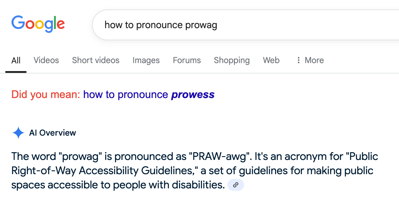 But don't always believe what large language models tell you... In this video, U.S. Access Board staff say aloud "pro" (as in professional) and "wag" (as in a dog's tail). Doesn't that just roll off your tongue? PROWAG. A quality acronym for a quality set of requirements.
