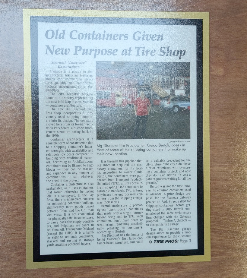 If you’d like to see how containers can be reused in architecture, go get your tires rotated at Big Discount Tire Pros (even if they’ll probably also try to sell you a wheel alignment you likely don’t need.)