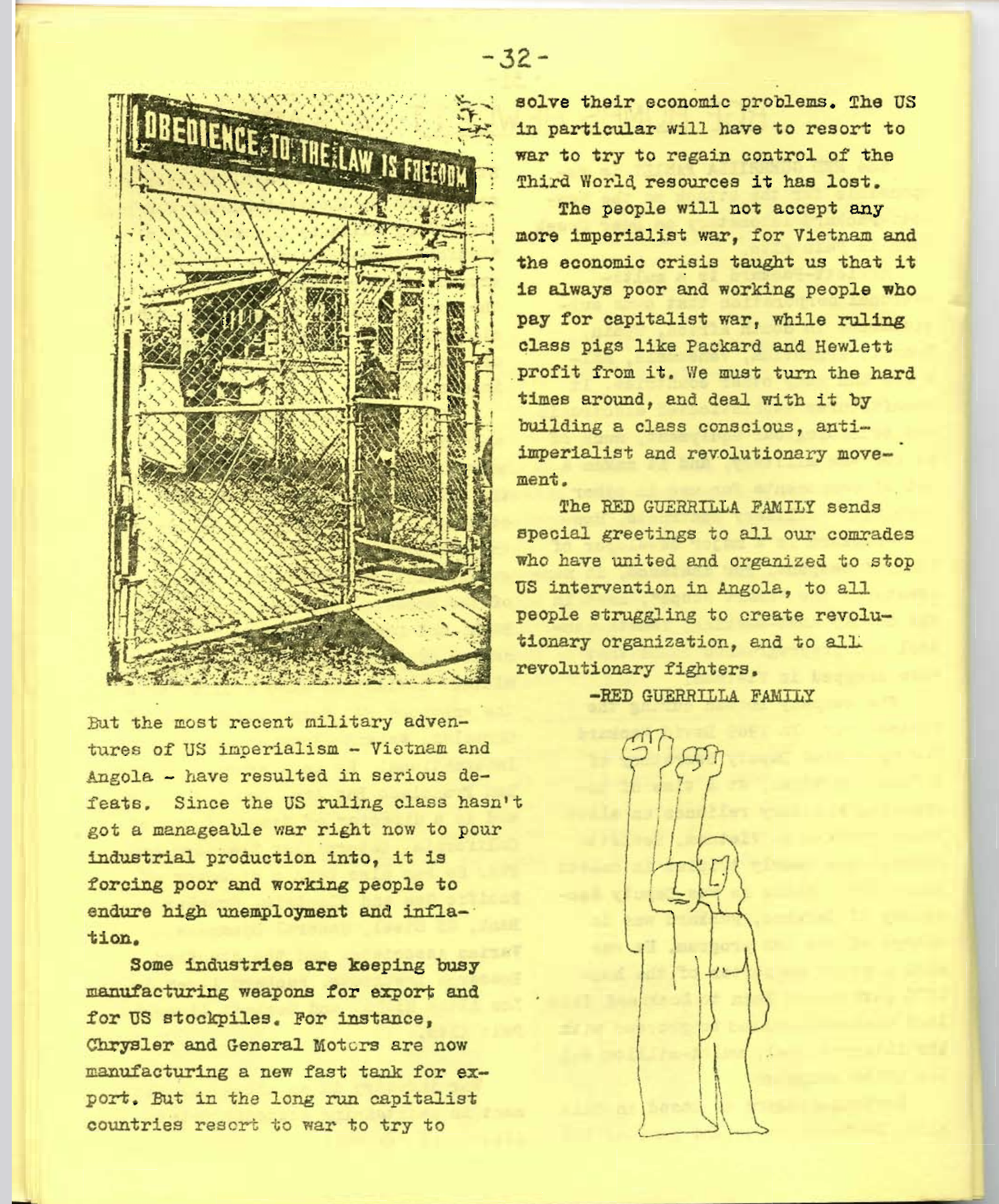 pages from "Dragon" April 1976, a newsletter by the "Bay Area Research Collective" associated with the Symbionese Liberation Army