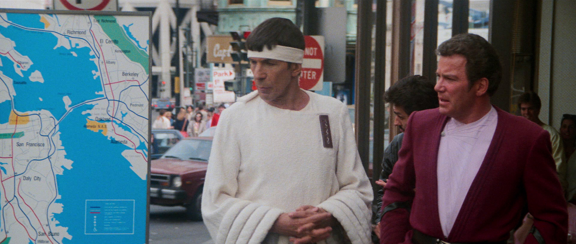 When Kirk and Spock visited the San Francisco of 1986, they found a Bay Area in transition. The orange portions on a street map highlighting the still active military installations in Alameda ("nuclear wessels"), San Francisco and Richmond (maybe the Point Molate Naval Fuel Depot?):