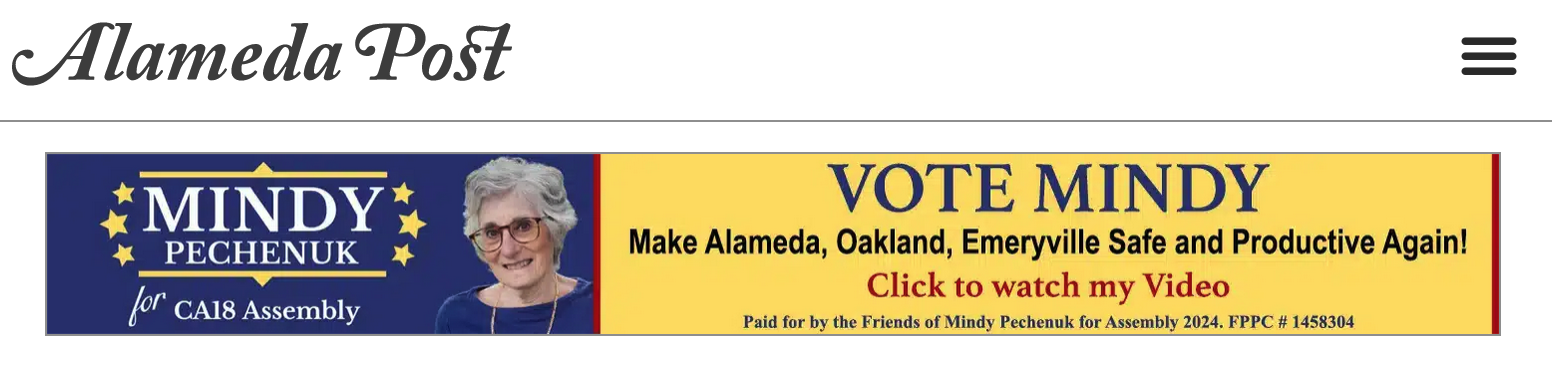 The linked video is a 2 minute long sampling of Trump's reactionary grievances grafted on to the local issues of Alameda and Oakland. (Emeryville is mentioned in the banner ad but doesn't get called out specifically as a den of failed wokeness... or whatever.)