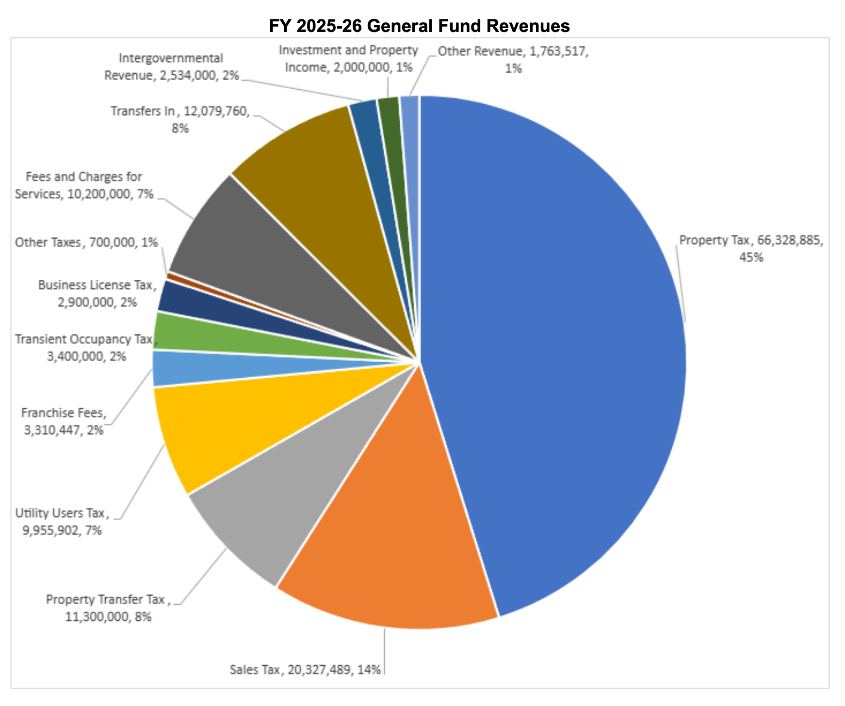 In the current fiscal year, about $11 million of revenue came from the property transfer tax (see the gray wedge of the pie in the lower right):