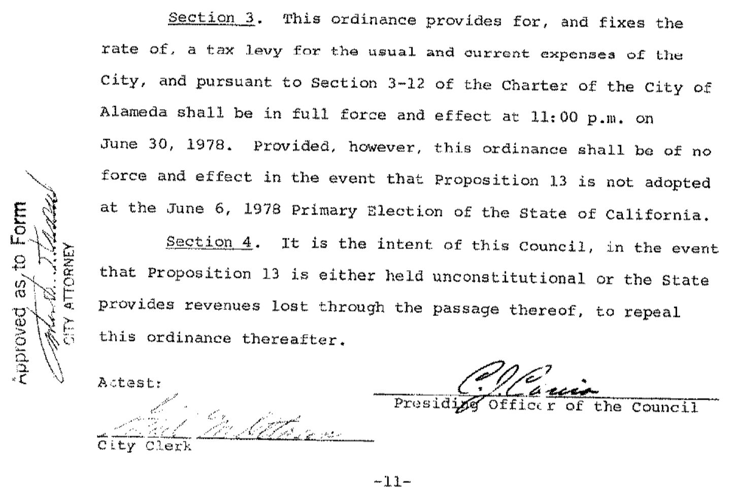- Proposition 13 appeared on ballots in June of 1978, immediately after the City of Alameda's initial property transfer tax was passed by City Council. The text of Alameda City Council's ordinance directly spells out the relationship: