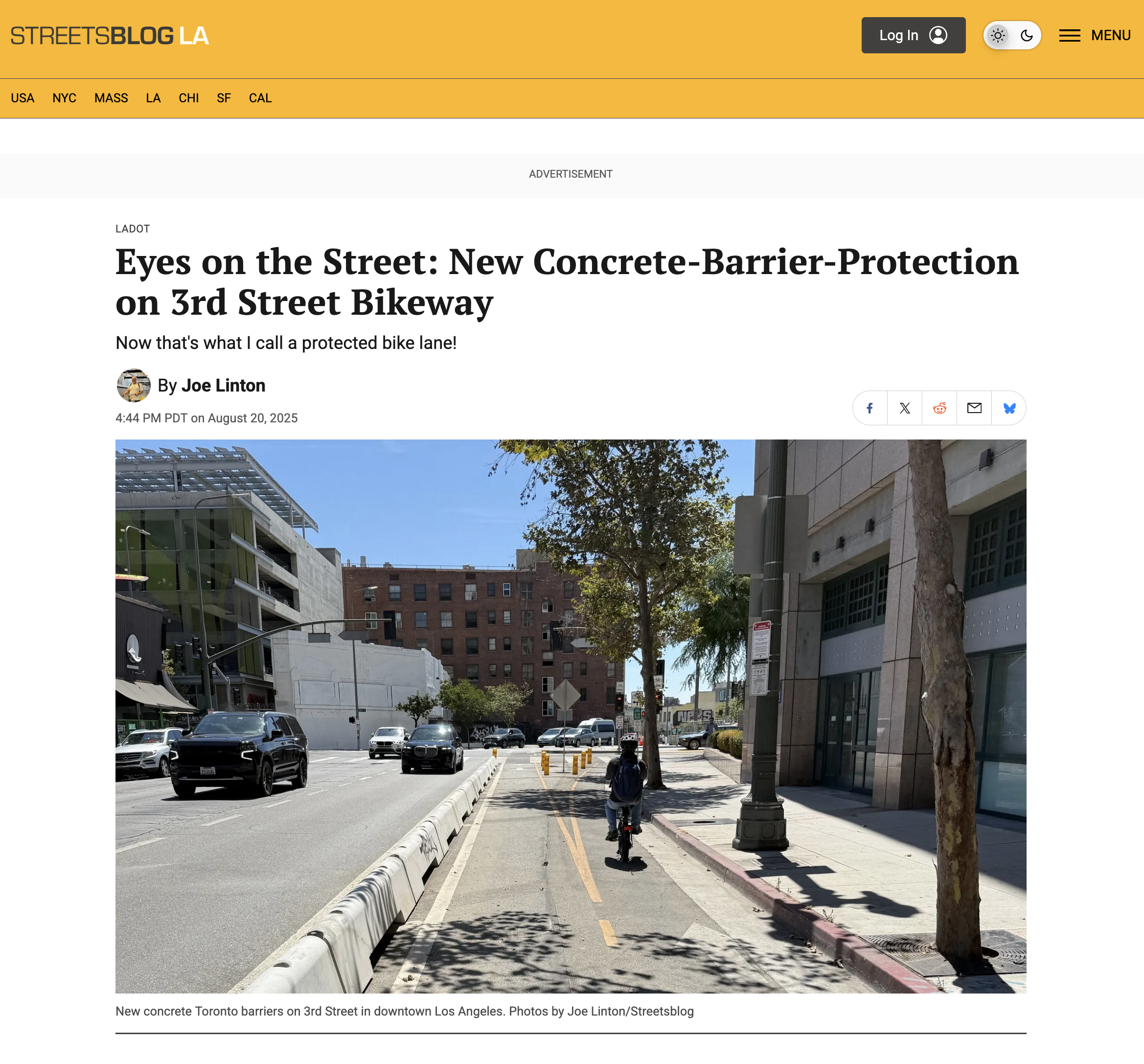 Left screenshot from the Seattle Bike Blog and right from Streetsblog LA