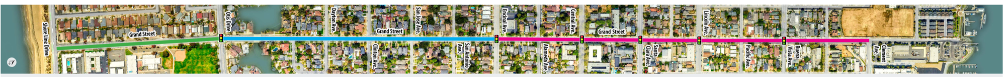 But current plans and current funding will only take those improvements part of the way north (to Encinal Ave). How much longer will cyclists have to carefully watch in order to avoid being "doored" in the unprotected bike lanes of Grand Street heading to and from Clement Ave? (Clement Ave carries the Cross Alameda Trail east/west across the island. There are currently no good ways to cycle from the CAT down to Shore Line Drive's cycletrack by the beach, or vice versa.)