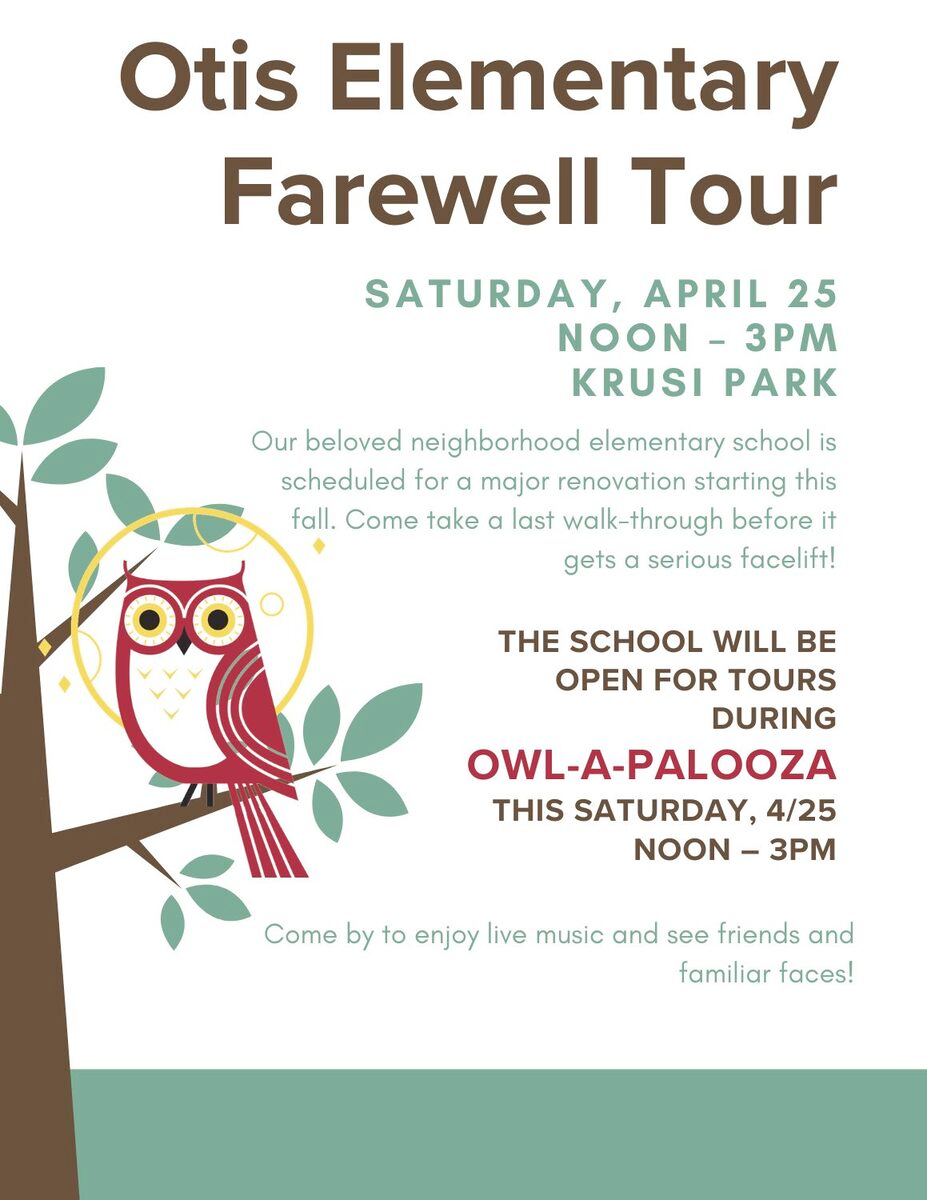 With all the deep connection around here, alums and parents-of-alums and combination-alum/parent-of-alums and neighbors and taxpayers are all invited for a farewell tour through Otis Elementary before it's crushed to smithereens: