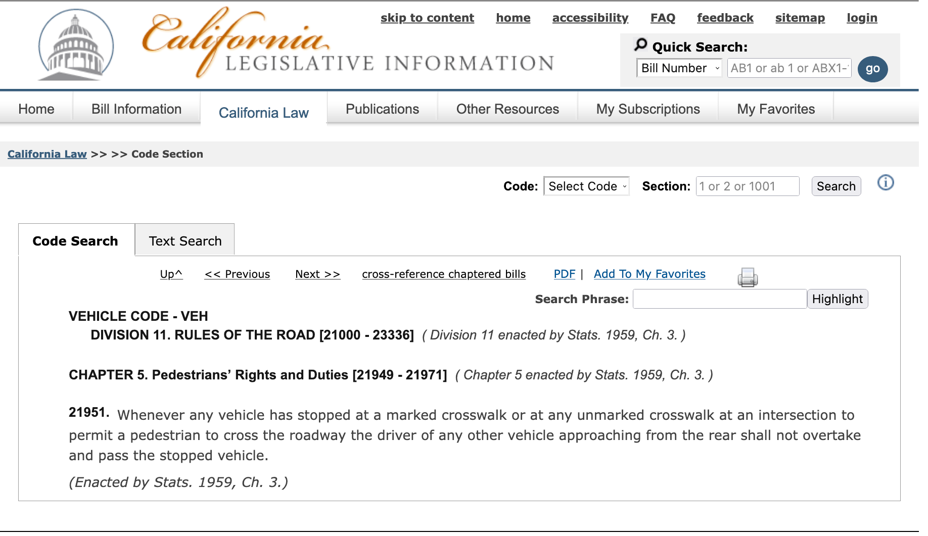 The "pedestrians' rights and duties" section of the California Vehicle Code sounds grand — but it just doesn't match the "on the ground" reality of many actual streets.